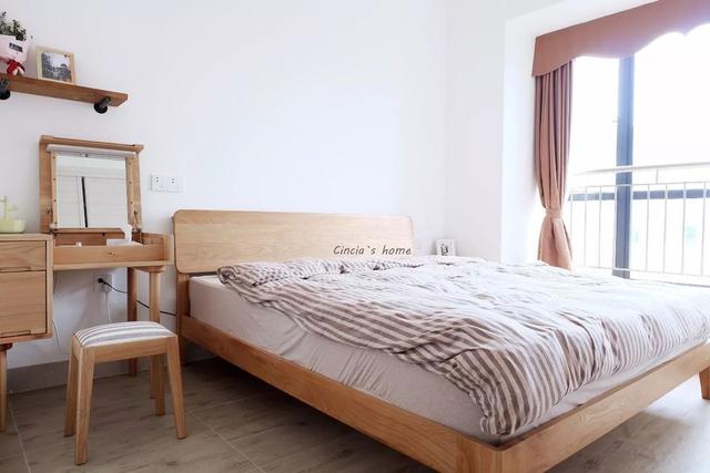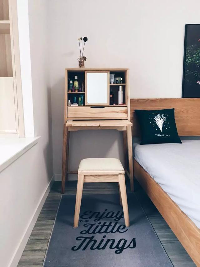 原木色梳妝臺(tái),即可充當(dāng)電腦桌;